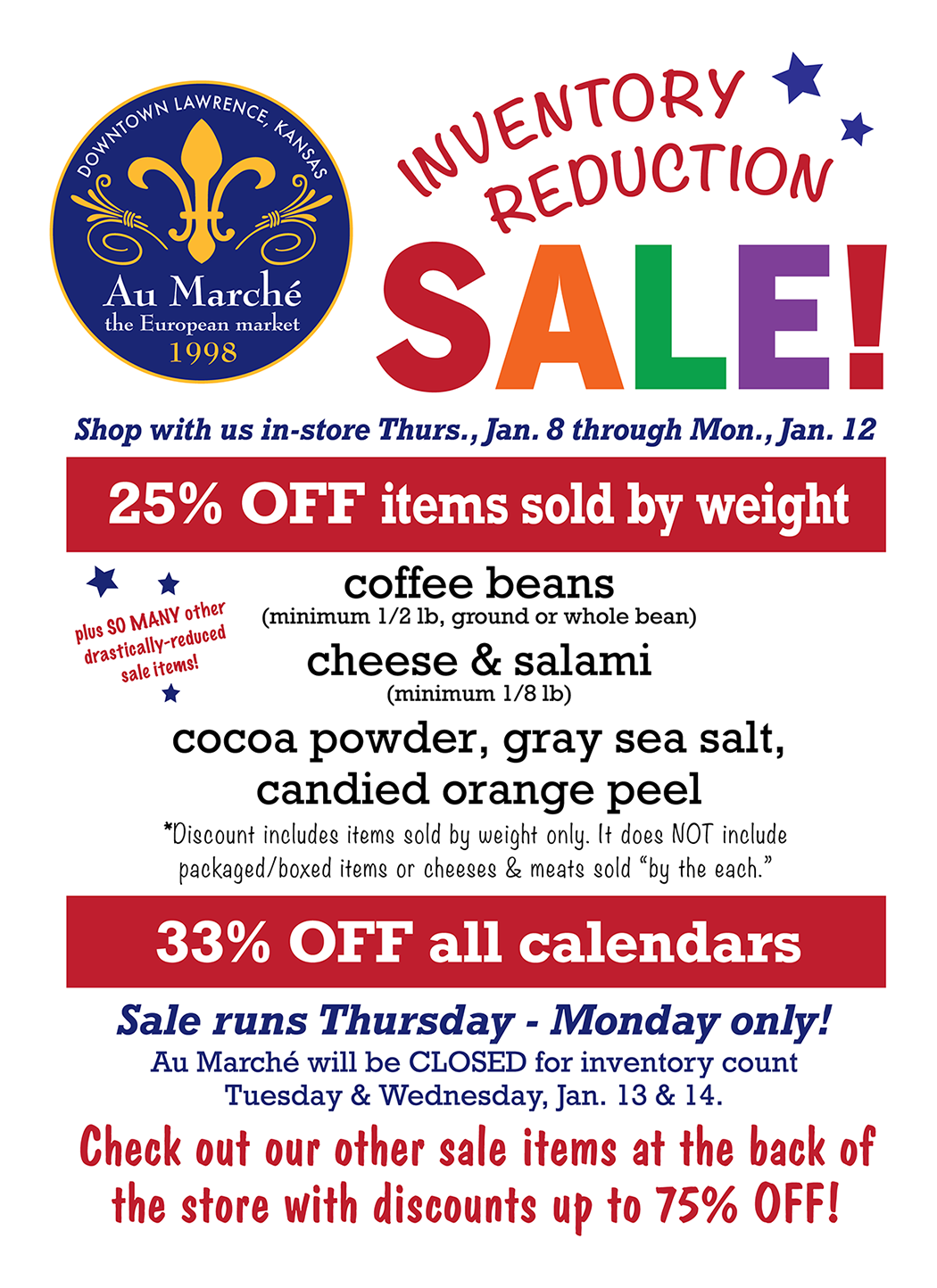 Au Marché is CLOSED on the following days: